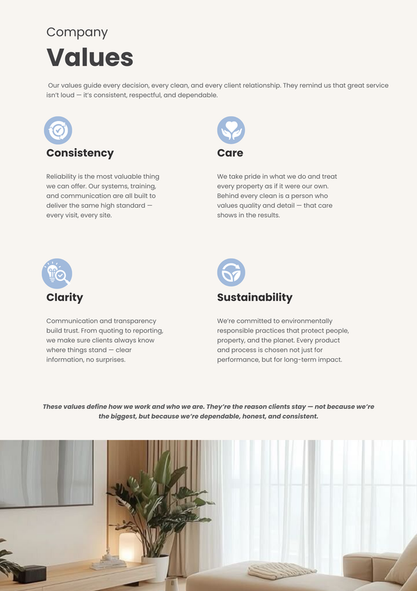 Browse the collection and choose the templates that match your services and the way you work. Each one is designed for real cleaning businesses, not generic use.